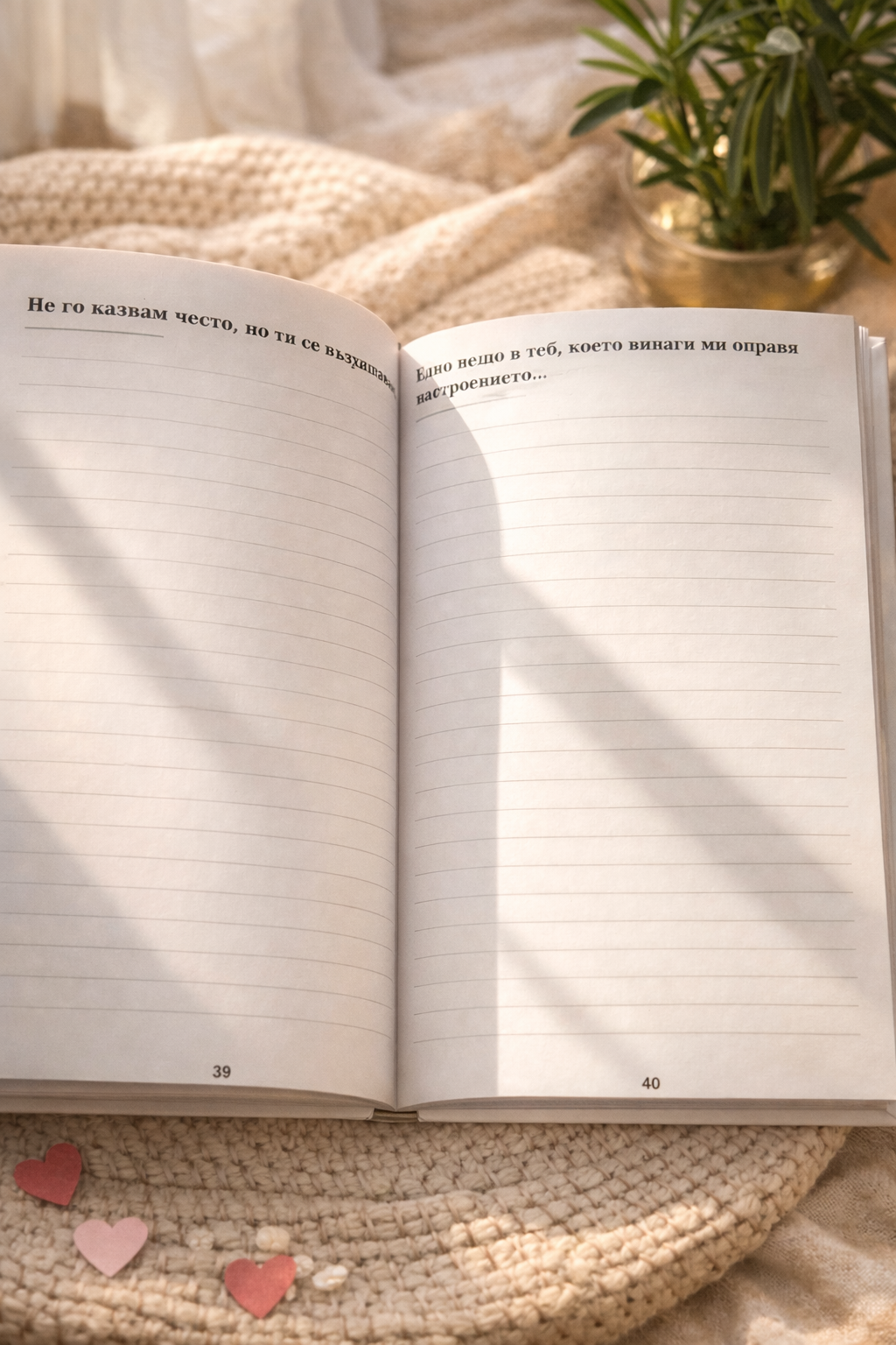Търсех нещо специално за годишнината ни и тази книга беше точно това. Качеството е невероятно, а въпросите вътре ни помогнаха да си припомним моменти, които бяхме забравили.